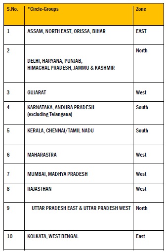 Applicable States/UTs : Assam, North East, Orissa, Bihar, Delhi, Haryana, Punjab, Himachal Pradesh, Jammu & Kashmir, Gujarat, Karnataka, Andhra Pradesh (Excluding Telangana), Kerala, Chennai/Tamil Nadu, Maharastra, Mumbai, Madhya Pradesh, Rajasthan, Uttar Pradesh East & Uttar Pradesh West, Kolkata, West Bengal