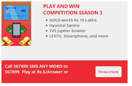 If you are smart enough to answer questions like “What is 3+3 = ?” or “How many days are there in a week?” or something as simple as “What is the color of Sky?”, then it is time to participate in PLAY AND WIN COMPETITION. Now, all you need is a basic mobile phone and enough balance to answer such simple questions.