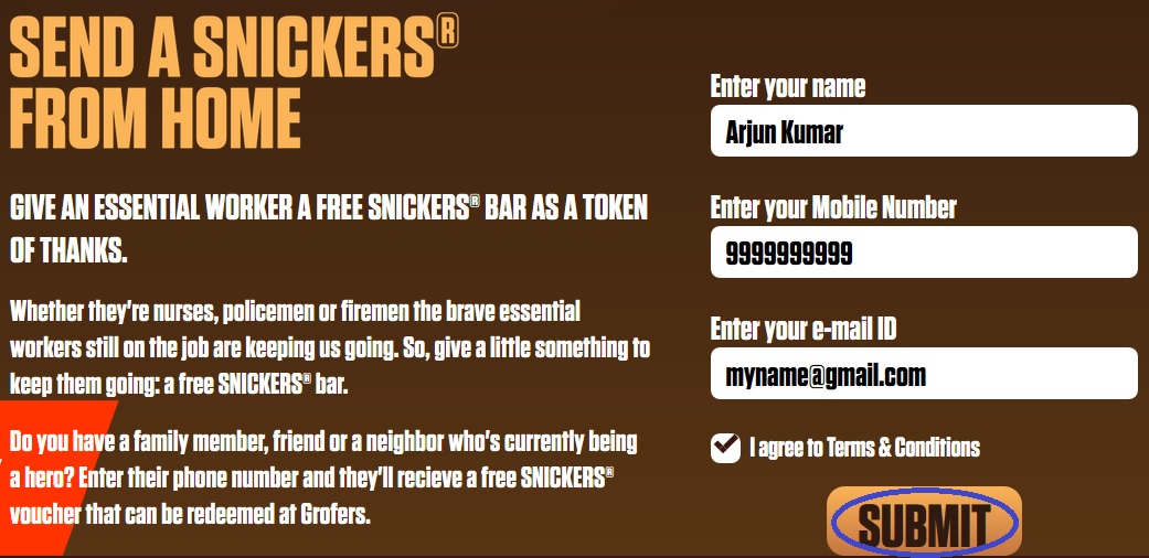 Send A Snickers From Home ‘Thank You’ Campaign 2020 : sendasnickersfromhome.in