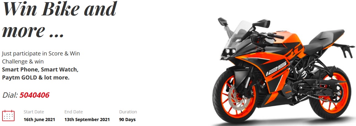 Score & Win Challenge presents an exciting opportunity for you to play and win lots of prizes. Hurry !!! Now is your chance to win Smart Phone, Smart Watch, Paytm GOLD & More Grab your phone now to Dial 5040406,Dial *545*06# or SMS CAR to 5040406 for registration and to play the contest send sms CAR TO 5040406 from your mobile.