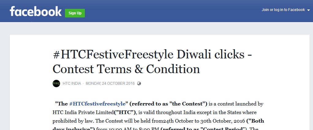 Competition Name : #HTCFestiveFreestyle HTC Festive Freestyle Diwali Clicks Contest 2016