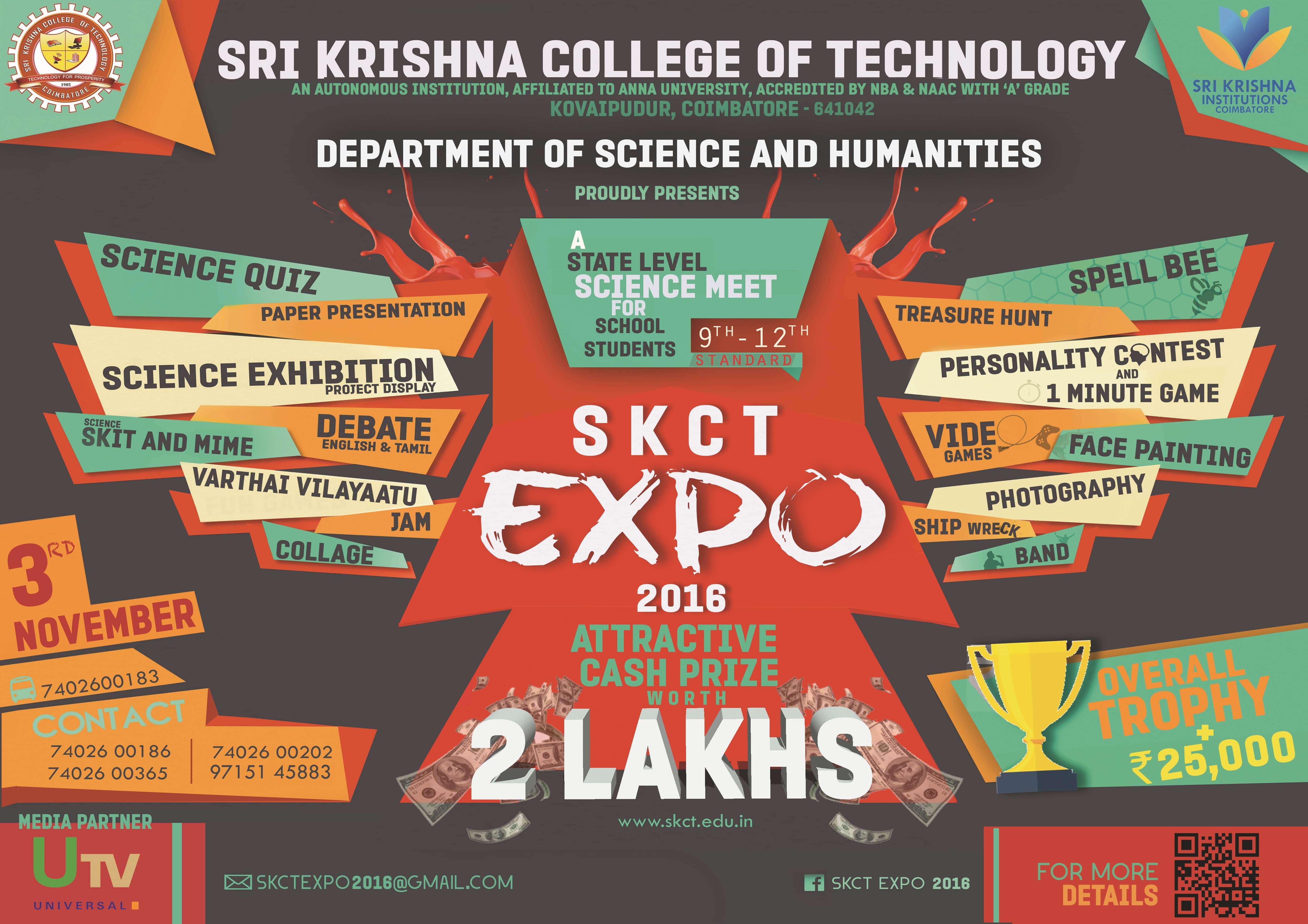 SKCT EXPO 2016 for school students from 9th-12th standard on 03rd Nov 2016