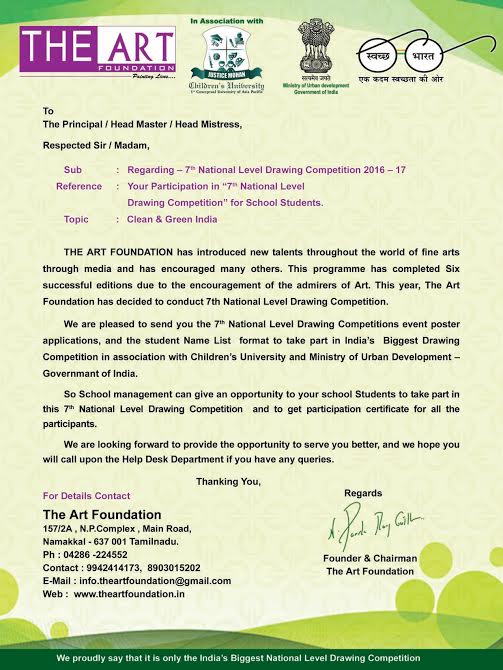 The Art Foundation 7th National Level Drawing Competition 2016-17 : theartfoundation.in