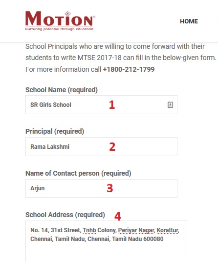 School Principals who are willing to come forward with their students to write MTSE 2017-18 can fill in the below-given form. For more information call +1800-212-1799