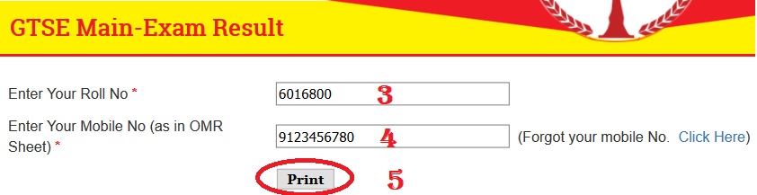 Also you need mobile number to check GTSE pre-exam result.
