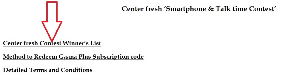 Contest Name : Center Fresh Smartphone & Talk Time Contest 2018