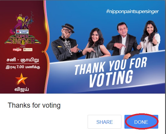 Finally you will receive the message like as follows and click on “Done” button to complete your votes.
