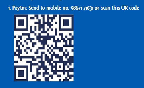 1. Paytm: Send to mobile no. 98671 71631 or scan this QR code