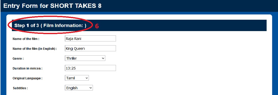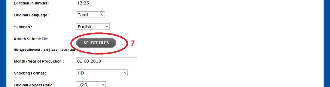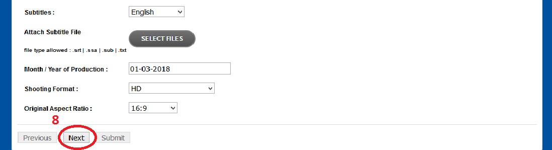 Step-6: Then enter the following Film Information like Name of the Film, Genre, Duration, Original Language, Subtitles, Month/ Year of Production, Shooting Format and Original Aspect Ratio etc.