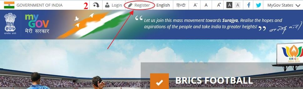 Step-1 : Go to the MyGov Portal through URL www.mygov.in