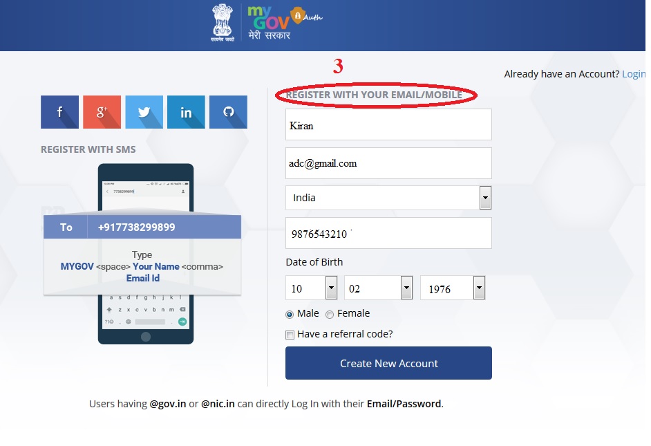 Step-4 : Click on ‘Create New Account’ button after filling all the details