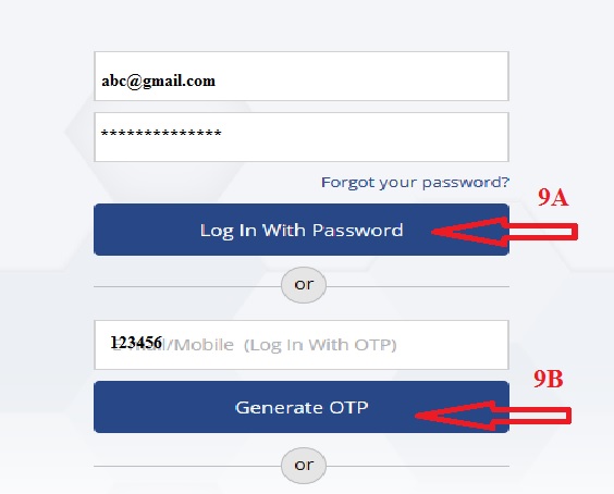 Step-9A : Login with Password -Enter ‘Email or Mobile’ and ‘Unique Password’ in respective fields and click on the ‘Log In With Password’. (After account creation a password mail is sent to the user’s email address.