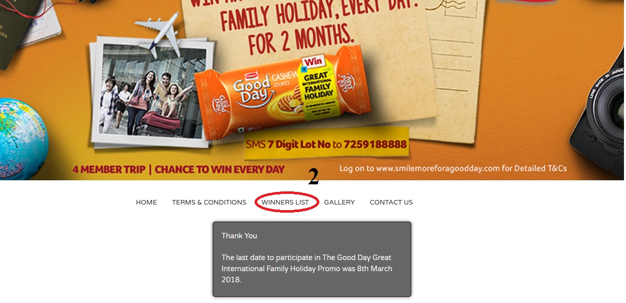 Just follow the simple steps to get the winners name of ‘Goodday Great International Family Holiday’ contest.
