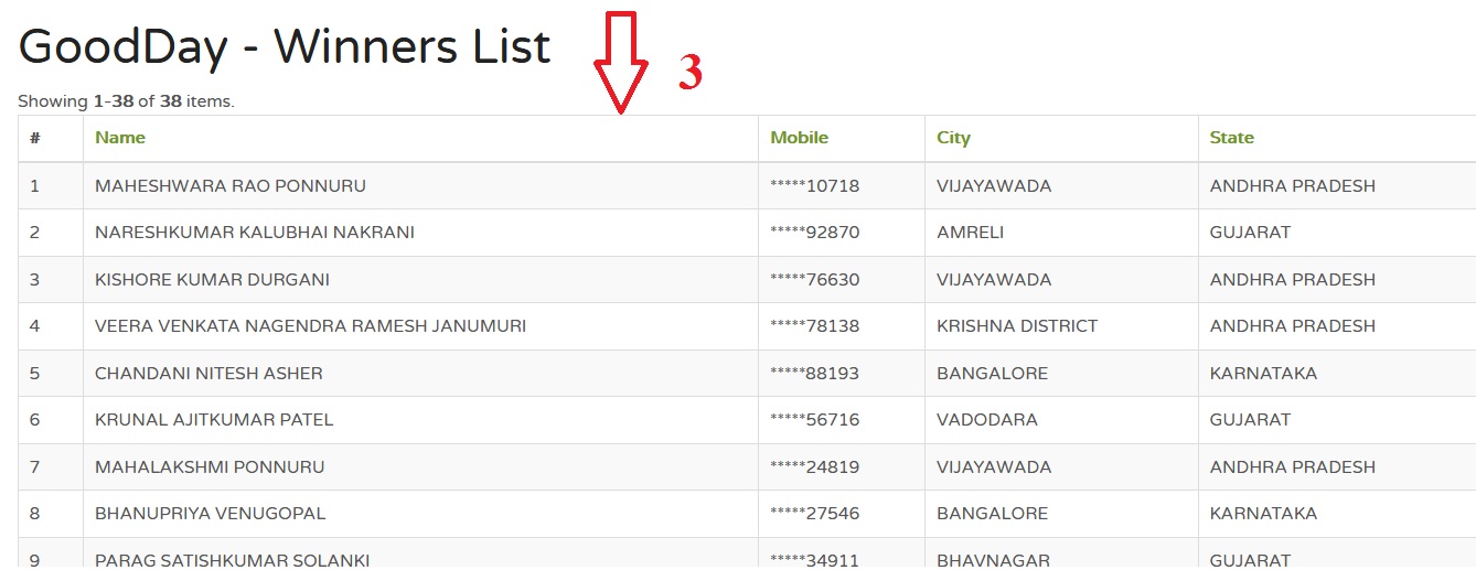 Step-3 : You can find the winners by Name, Mobile Number, City and State.