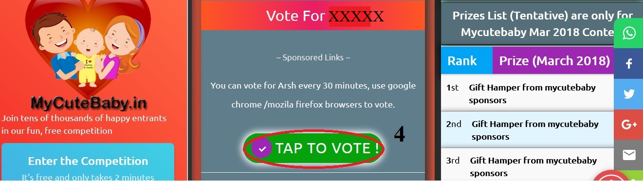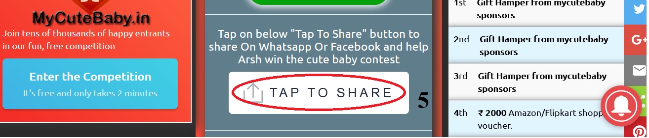 Step-5 : After that, “Tap To Share” button to share On Whatsapp (or) Facebook and help your baby (or) your favorite baby to win the cute baby contest.