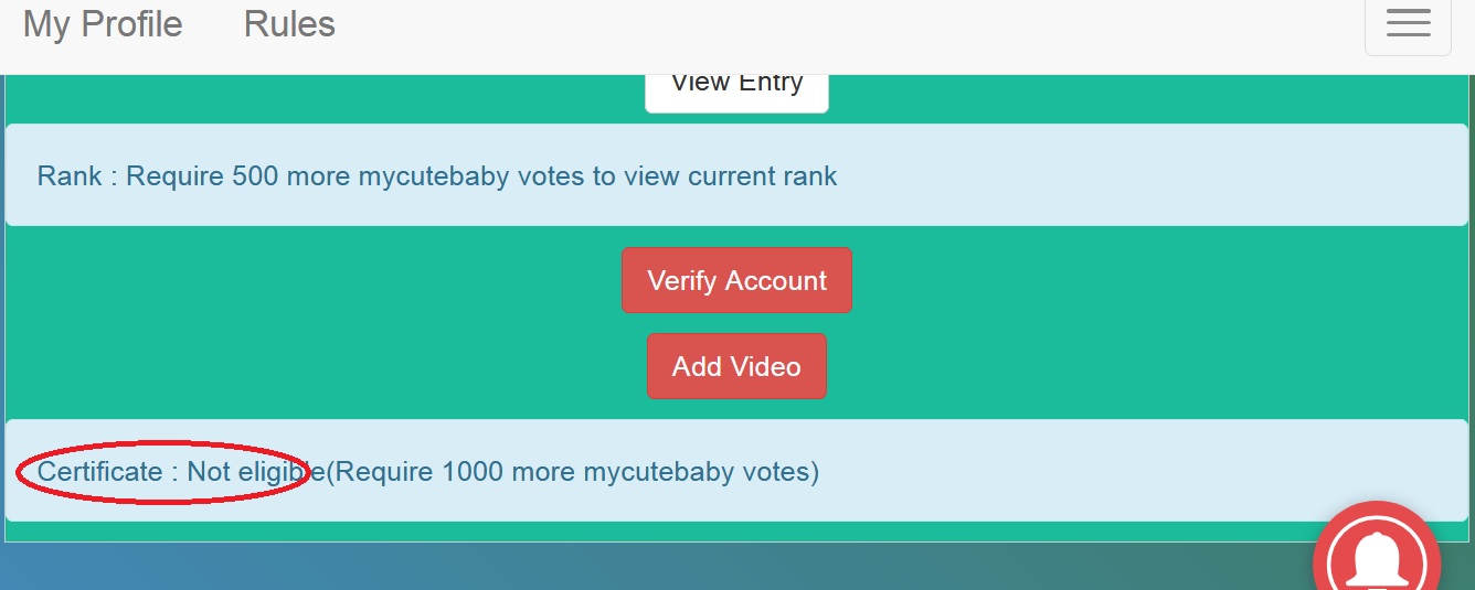Participants can check their Current Rank/Position, if participant Mycutebaby Votes are more than 500
