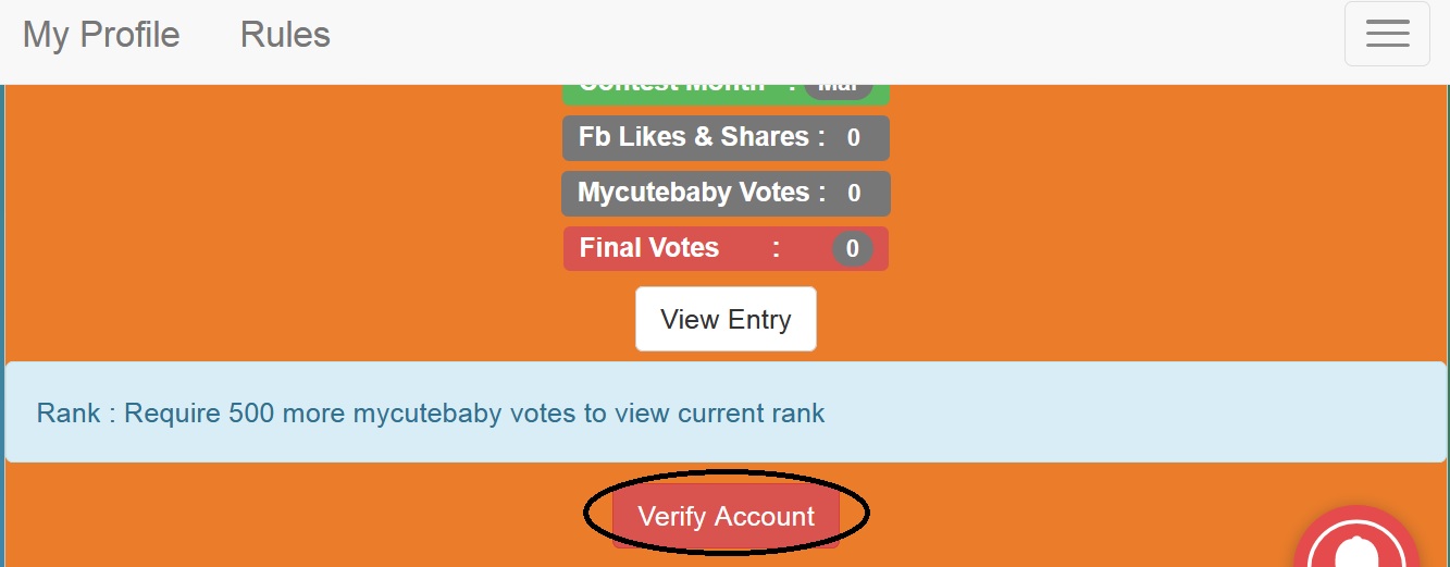 Level-2 : After getting 500 mycutebaby votes , rank will be visible in mycutebaby dashboard .