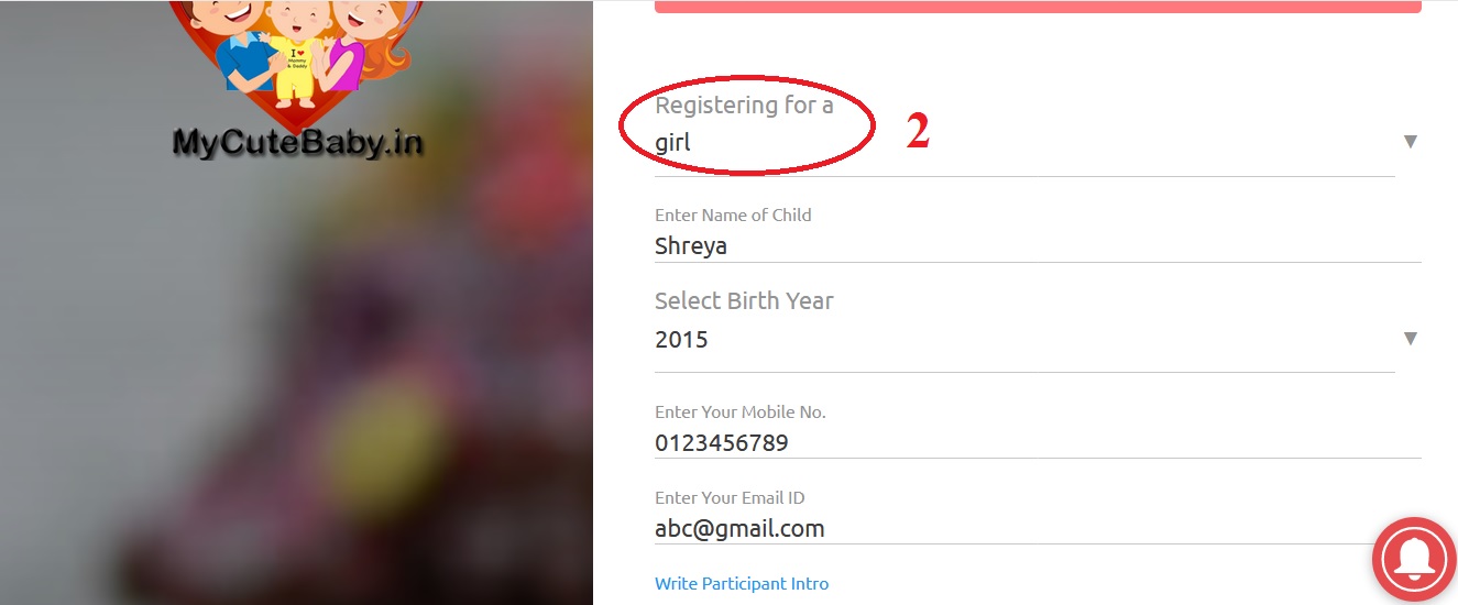 Step-2 : Enter your baby details, your contact details and Write about your kid in few words in the space provided.