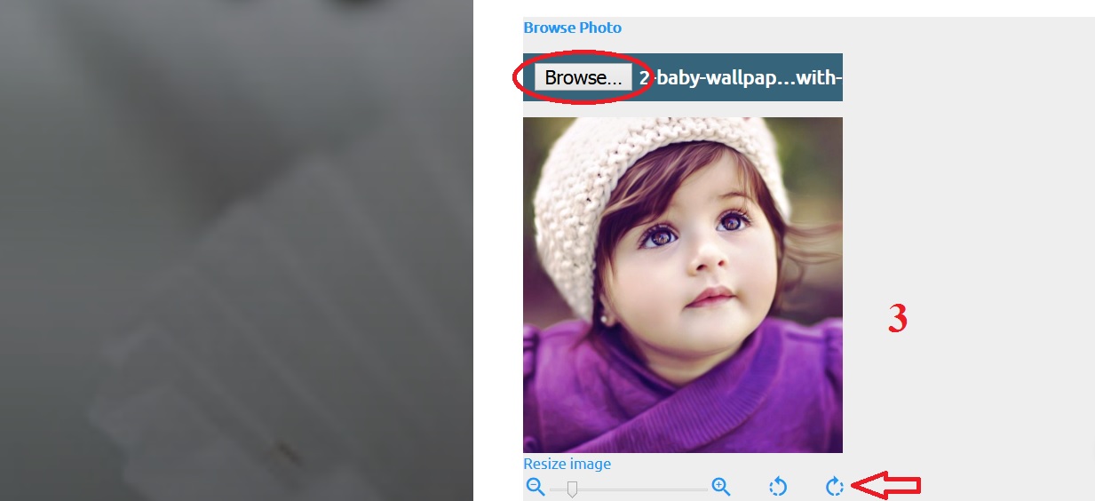 Step-3 : After that, upload your baby photo by clicking on the ‘Browse’ button. You can use the Resize and Rotate options to adjust the photo.