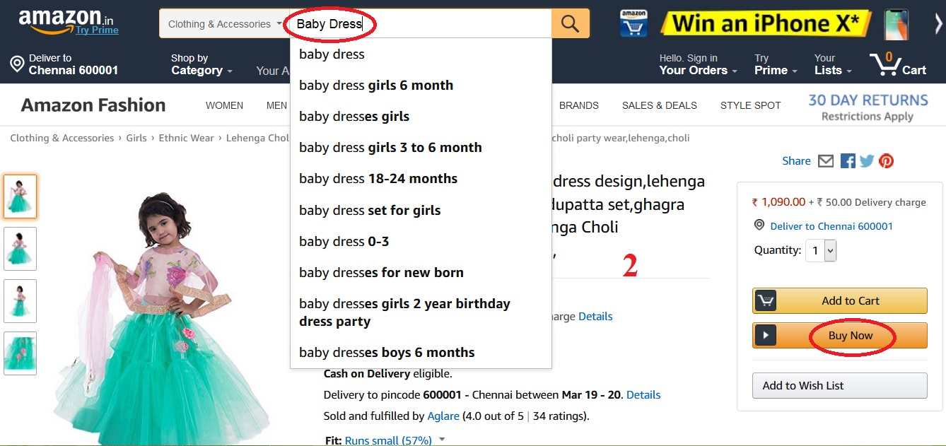 Step-2 : Search for any item you want to buy and click on buy Now button.