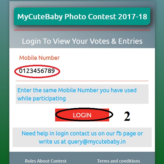Step-1 : Go to the Login page through URL http://mycutebaby.in/contest/ulogin/
