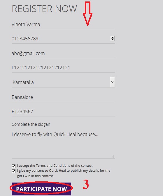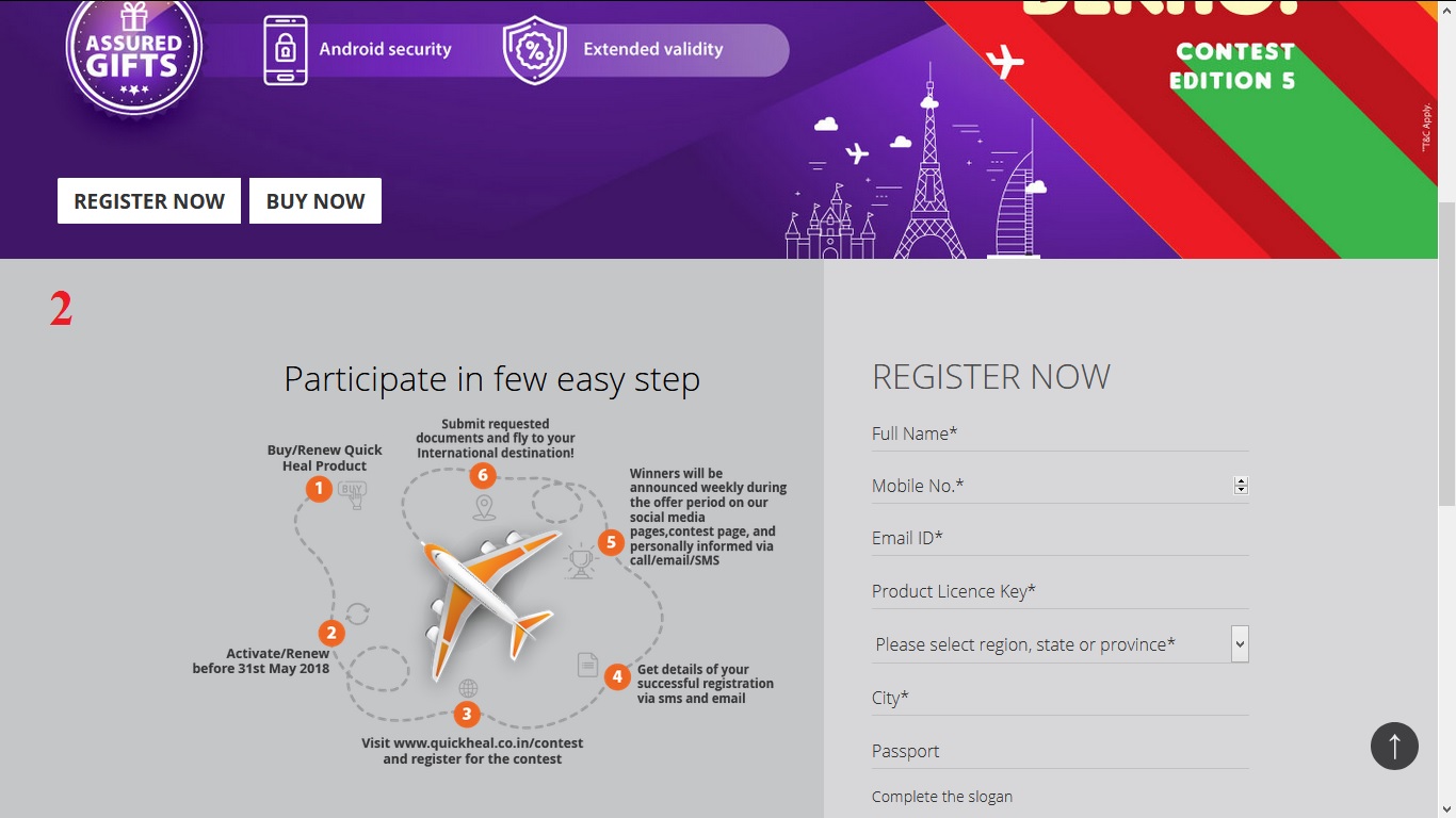 Step-2 : Once the product is activated/renewed they will log on to www.quickheal.co.in/contest