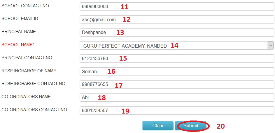 Step 17 : Enter your RTSE Incharge Contact No [9988776655]