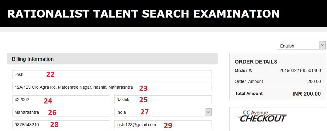 Step 23 : Enter your Billing Address [12A/123 Old Agra Rd, Matoshree Nagar, Nashik, Maharashtra]