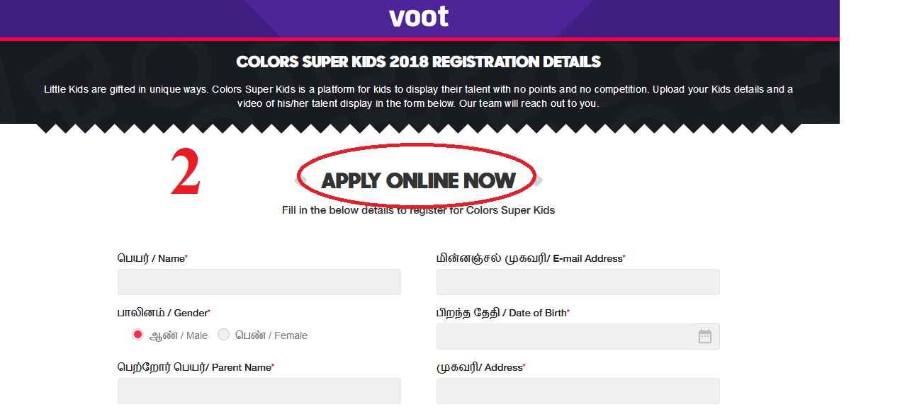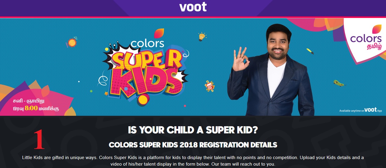 Colors Tamil Super Kids 2018 Registration : voot.com