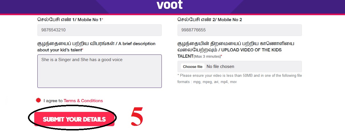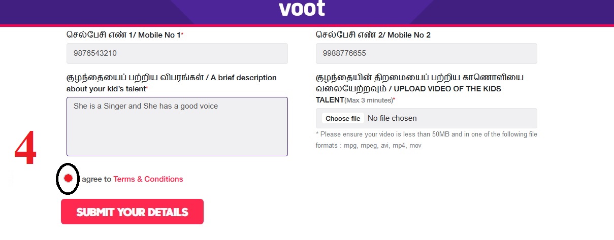 Upload your Kids details and a video of his/her talent in the form available on the Voot website. Our team will reach out to you.