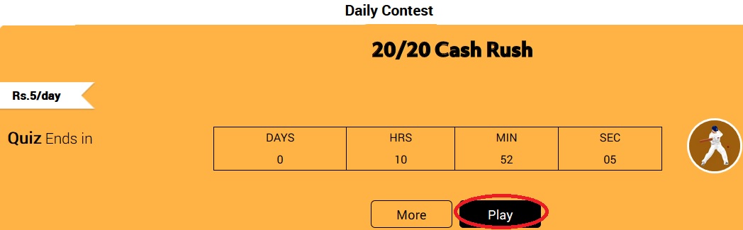 IF you are a follower of T-20 Cricket series and a huge fan of International Cricket then start playing 20/20 CASH RUSH Quiz.