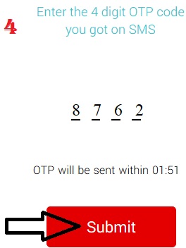 Step 4 : Enter the 4 digit OTP code you got on SMS and click Submit button