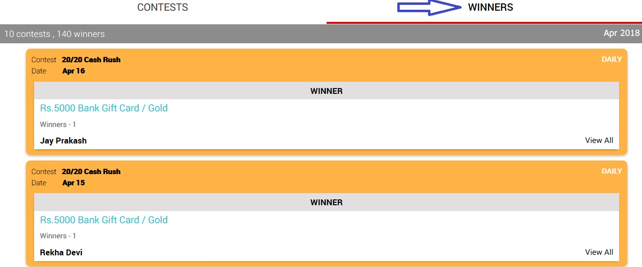 Check if your name appears in the Winners section in the Home page. Or You can login and check your winnings in .My Zone.. You can access My Zone by clicking profile icon in the top right corner of Home page or through Menu.
