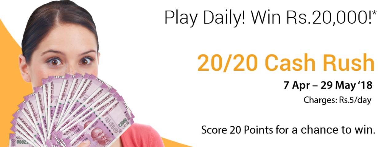 Airtel’s 20/20 CASH RUSH Quiz begins on 7th April 2018 and ends on 29th May 2018.