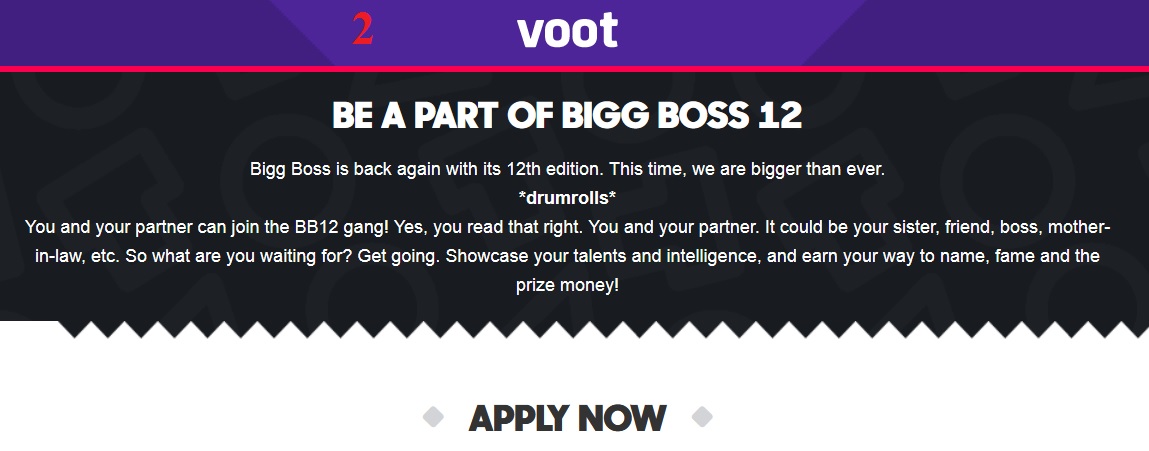 Step-1 : Visit the official registration link of Bigg Boss 12 [https://www.voot.com/biggboss].