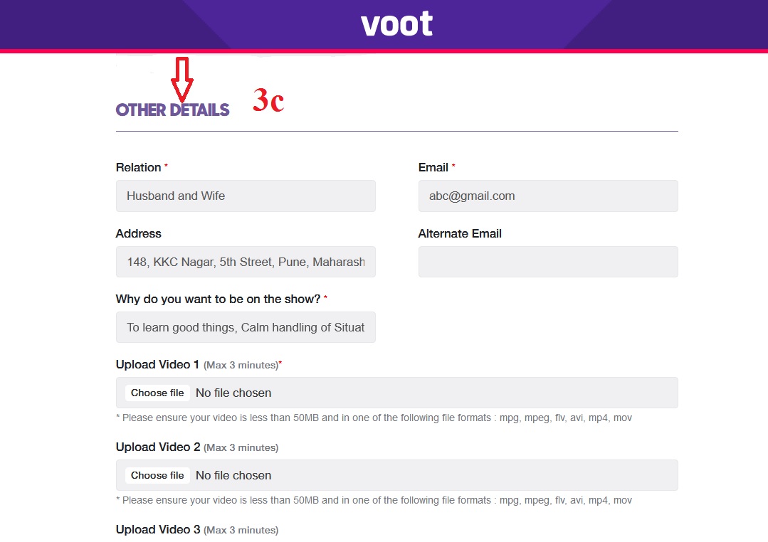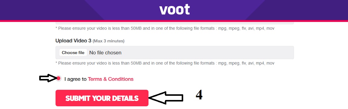 The Participant shall also have an option of registering through the Voot website “www.voot.com“ by filling in all the required details as stated in the Table A – Registration fields specified hereinabove and uploading the Audition Video/s.