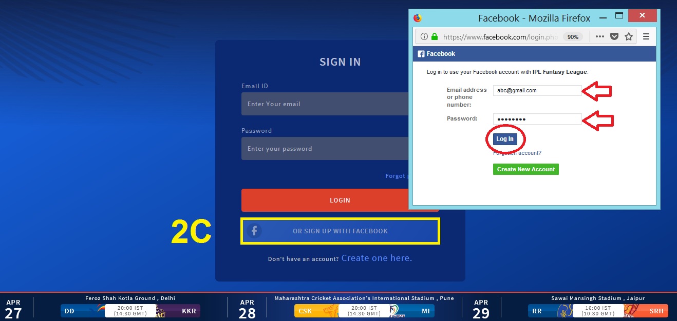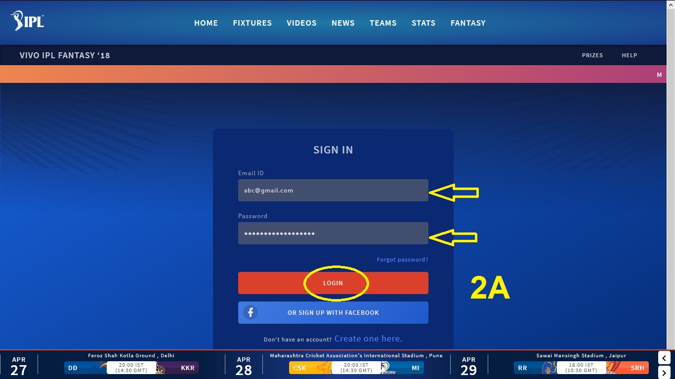 If you have an account in the ‘IPL T20’ website then, Enter your Email ID and Password in the space provided and submit the login button to play the game.