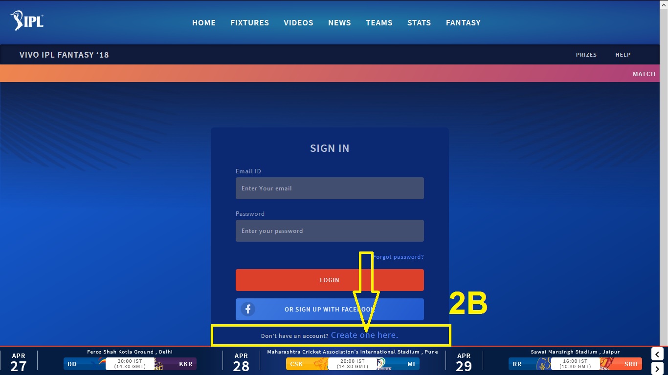 Go to the following link [ https://fantasy.iplt20.com/ ] and click on ‘Play Fantasy’ link.
