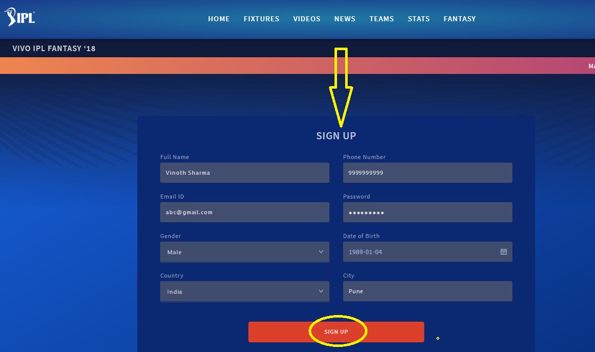 2) Enter your Full Name Email ID, Phone Number, Account Password, Date of Birth, Gender, Country of Residence, City of Residence and then submit the ‘Sign Up’ button to start the game.