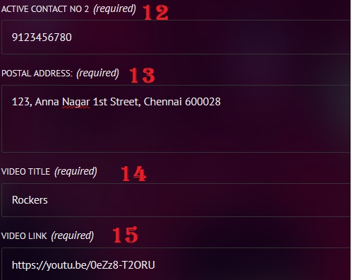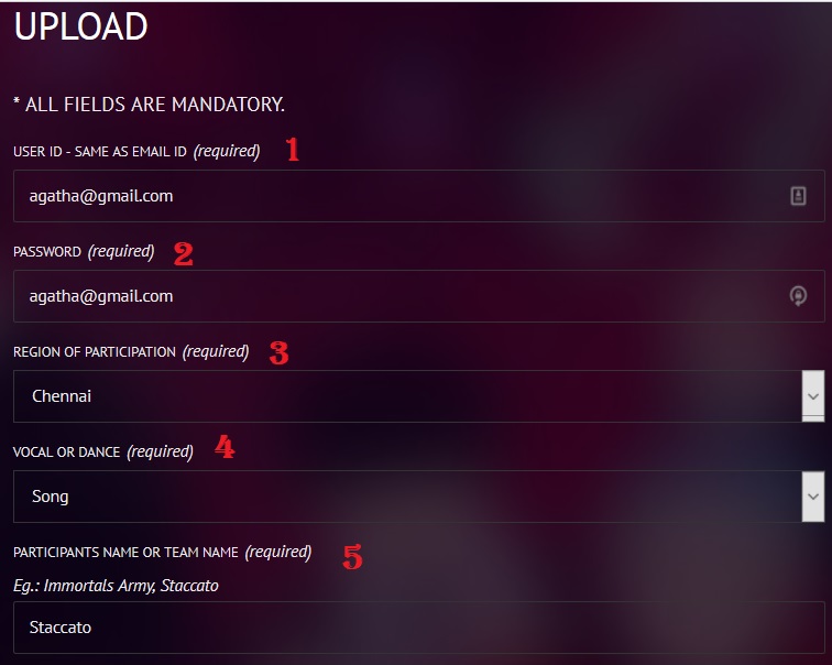 5. Enter your Participants Name Or Team Name (required) Eg.: Immortals Army, Staccato