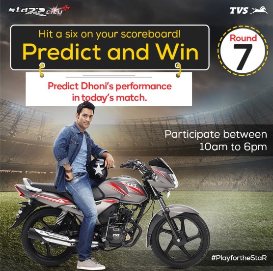 This cricket season, you could win a TVS StaR City+ while you cheer for your favourite Star.