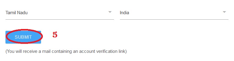 Step 5 : Click the Submit button. After successful registration you will receive a mail with account verification link.