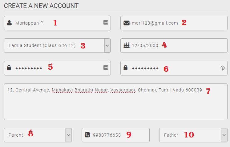7. Enter your Address for Communication [12, Central Avenue, Mahakavi Bharathi Nagar, Vaysarpadi, Chennai, Tamil Nadu 600039]