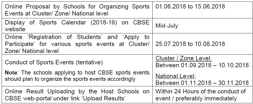Schools wishing to host any of the competitions at Cluster/ Zonal or National Level in any of the disciplines, may apply online by clicking link ‘Sports’ available on CBSE websites (www.cbseacademic.in and www.cbse.nic.in).