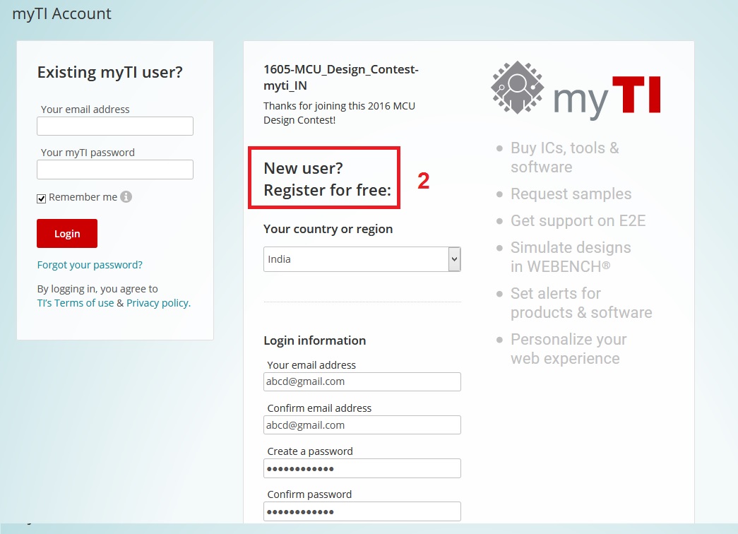 ** Go to the link [https://www.ti.com/] to create a myTI Account