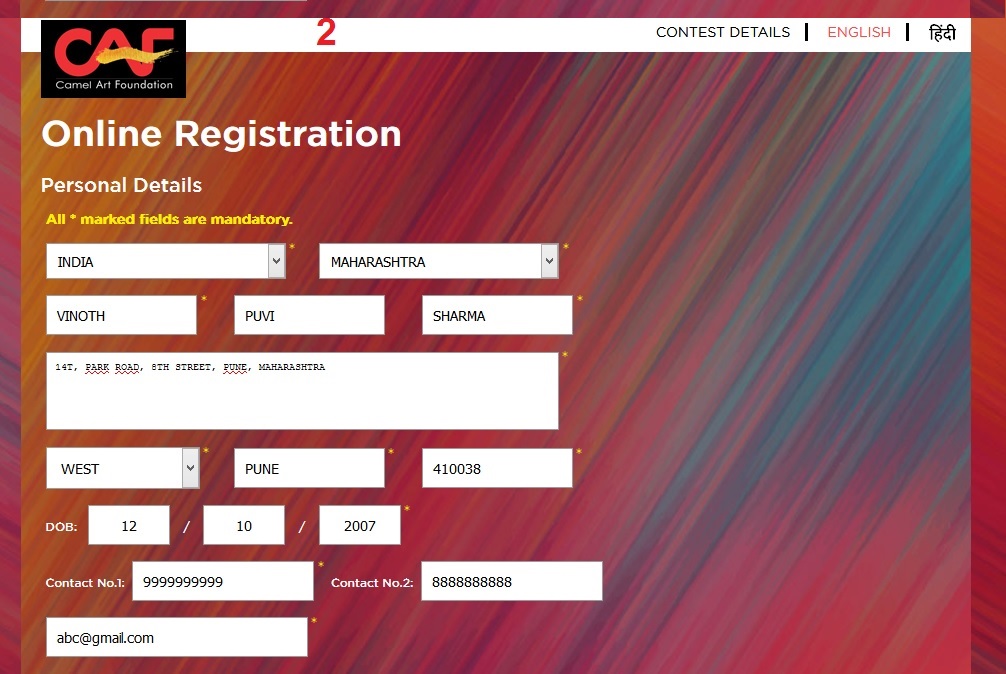 Step-1: Go to the link “http://www.camelartfoundation.com/index.html” for Online Registration