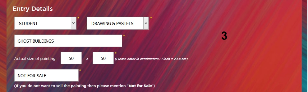 Step-3: Enter the Art Work details link Medium, Title, Size etc.