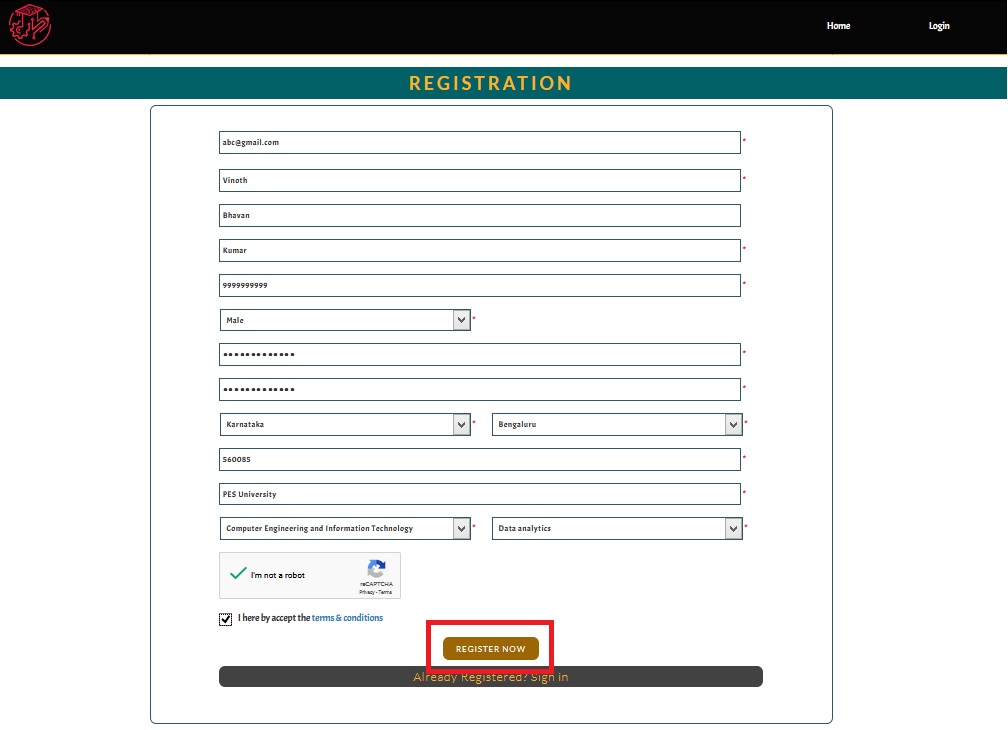 Step-2: Fill all the required details in the registration form like Email ID, Name, Gender, Address, Mobile Number and College Details etc.