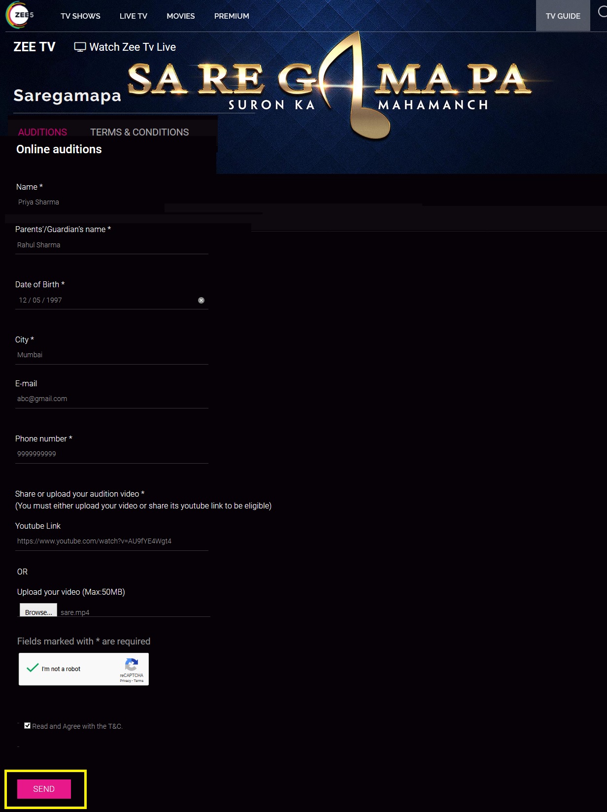 Contest Name : Sa Re Ga Ma Pa 2018 Online Audition Registration