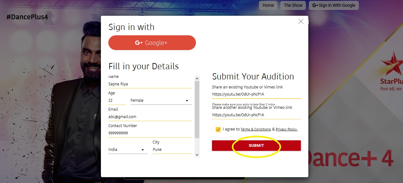 To register and to participate in the Digital Auditions, the interested Participant (s) shall log on to the Website/Platform and submit the following personal details including but not limited to full name, gender, age, email ID, contact number(s), the name of their country/state/city where they reside, and/or any other information/documentation as sought by the Company, at its discretion during the Audition Period (“Personal Information”) in a manner and form, as requested and /or prescribed on the Website/Platform.
